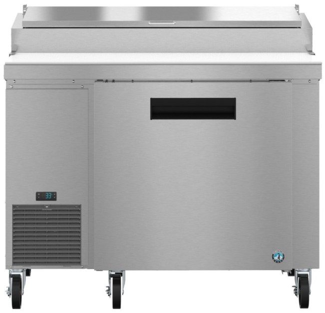 It features a dual controller system for ideal temperatures in both the rail and cabinet. The PR46B is constructed of stainless steel, which protects this unit from minor damage and rust. Plus, it is easy to clean. The PR46B includes (6) polycarbonate plastic 1/3rd size pans, 4″ deep (can accept 6″ deep pans). Equipped with a field reversible, spring assisted self closing door with stay open feature (no kit req’d). A 46″ x 19″ x 0.5″ thick white polyethylene cutting board is standard. Refrigerant flow is controlled with a capillary tube. The unit is ETL Safety (US & C) Listed, ETL Sanitation, Georgia Made Certified and includes a 7-7-7 Warranty (seven years labor, seven years parts, seven years compressor — visit hoshizakiamerica.com/support/warranty for eligibility information).